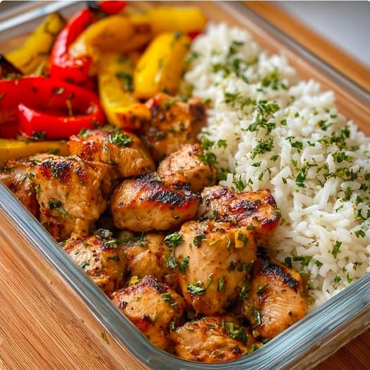 The ultimate make-ahead, balanced lunch that’s flavorful, satisfying, and holds up perfectly in the fridge. These bowls feature juicy grilled chicken, fluffy rice, colorful roasted peppers and broccoli, and a zesty lemon-herb dressing—all pre-portioned for a grab-and-go healthy week.