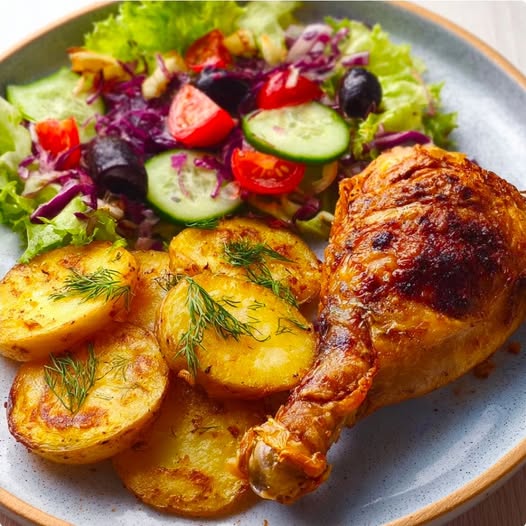 Roasted Chicken Leg with Potatoes & Fresh Salad