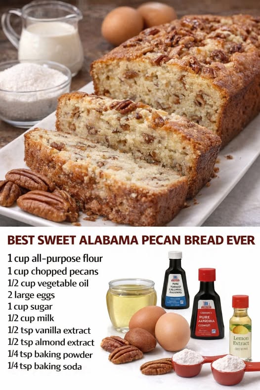 This isn’t just another nut bread—it’s a rich, cake-like, caramel-kissed loaf deeply rooted in Southern tradition. Often called “Pecan Bread” or “Pecan Cake Bread,” it’s a staple at holidays, potlucks, and family gatherings. It’s wonderfully moist, packed with toasted pecans, and has a subtle sweetness that pairs perfectly with coffee or tea.