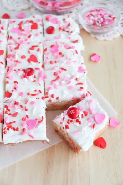 Enjoy making and sharing these sweet, sprinkle-adorned bars! They’re sure to spread the Valentine’s cheer.
